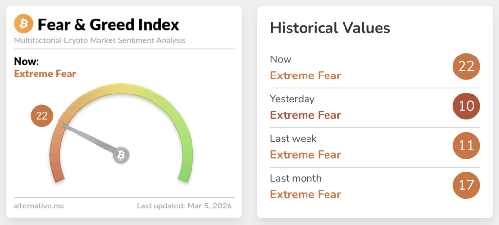 Sentimen pasar kripto juga mulai menunjukkan pemulihan. Hal ini terlihat dari indeks Fear and Greed yang digunakan untuk mengukur psikologi pasar. Indeks tersebut naik ke skor 22 dari sebelumnya di level 10. Meski demikian, angka ini masih mencerminkan kondisi “ketakutan ekstrem” di kalangan pelaku pasar.