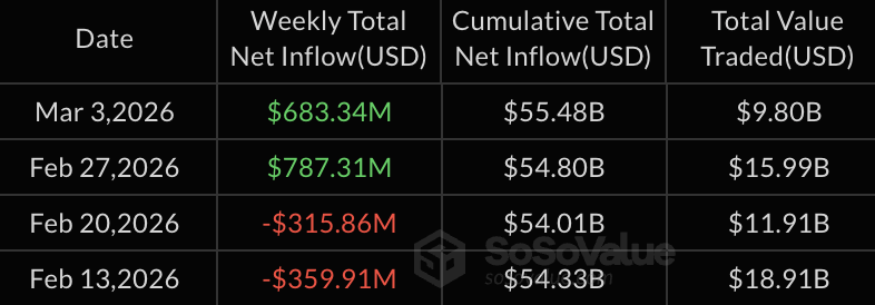 Dalam pekan ini saja, tercatat lebih dari US$680 juta dana baru masuk ke ETF Bitcoin yang diperdagangkan di Amerika Serikat, menurut data SoSoValue. Arus dana tersebut menunjukkan bahwa investor institusional mulai kembali masuk ke pasar kripto.