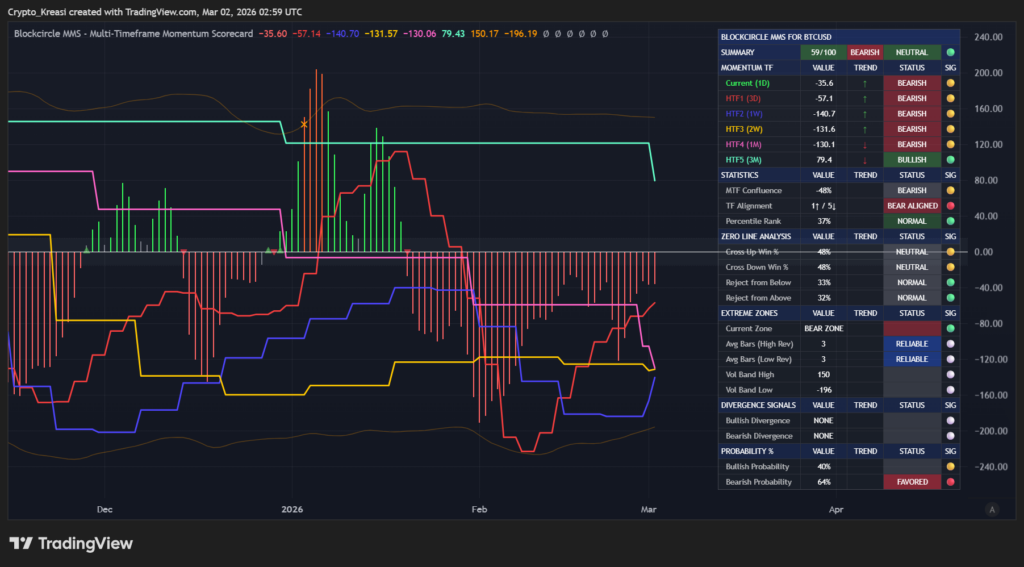 MMS dirancang untuk menjawab satu pertanyaan inti secara cepat: apakah momentum selaras di berbagai timeframe, atau justru saling bertentangan?