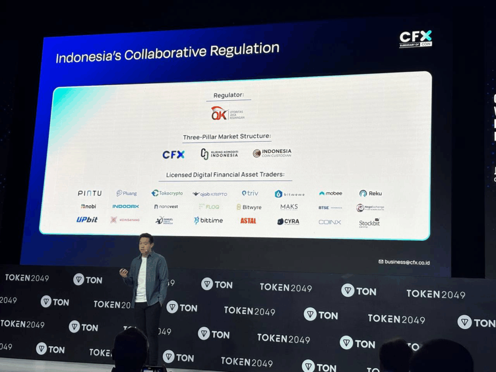 Dalam ajang TOKEN2049 Singapore pada Kamis (2/10/2025), Jeth menyampaikan bahwa kunci dari perkembangan pesat ini adalah keberhasilan Indonesia mengimplementasikan struktur pasar tiga pilar (Three-Pillar Market Structure) yang unik.