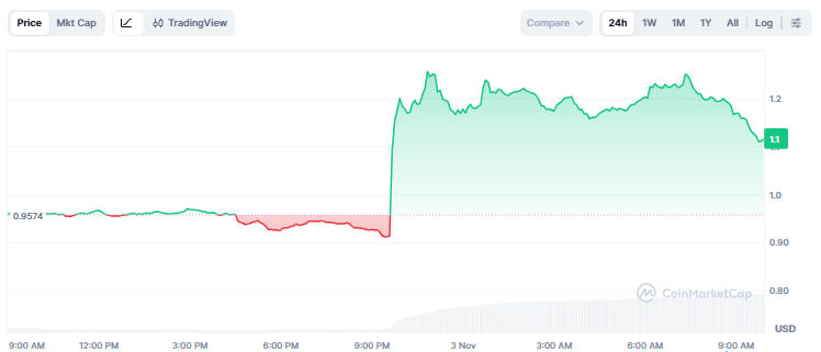 Pernyataan sederhana itu memicu reli tajam harga ASTER dari US$0,91 hingga mencapai puncak di US$1,26, sebelum terkoreksi ke kisaran US$1,1 menurut data CoinMarketCap.