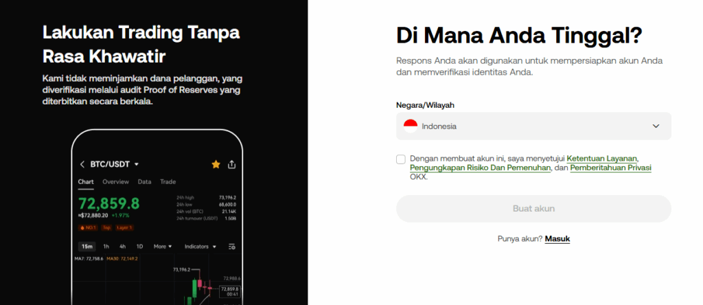 Untuk mengakses seluruh fitur OKX, pengguna perlu memiliki akun terlebih dahulu. Berikut panduan singkat cara membuat akun di platform ini.