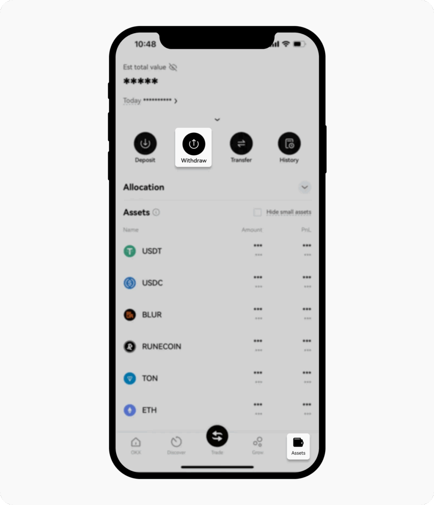 • Buka aplikasi OKX, lalu pilih Assets > Withdraw.