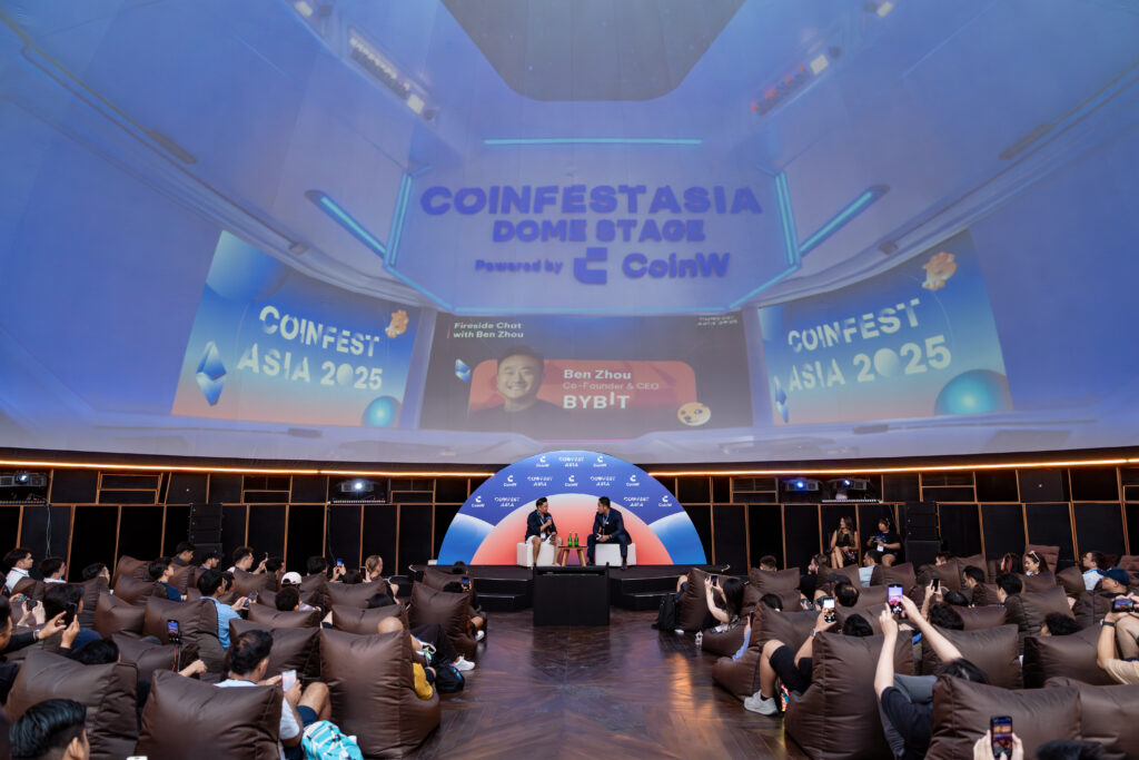 Ben Zhou, Co-founder dan CEO Bybit, berbicara di atas panggung dalam sesi fireside chat pada Coinfest Asia 2025 di Bali. Sumber: Coinfest Asia