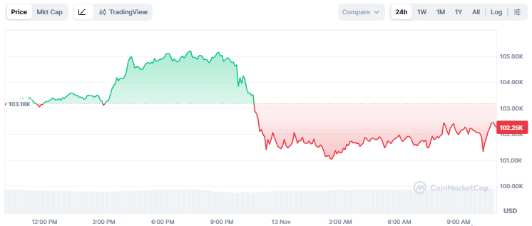 Menyusul kepastian berakhirnya shutdown, pasar kripto kembali menunjukkan pemulihan. Berdasarkan data CoinMarketCap, Bitcoin mengalami rebound perlahan ke atas US$102.300 setelah sebelumnya jatuh di bawah US$101.000 akibat ketidakpastian politik di AS.